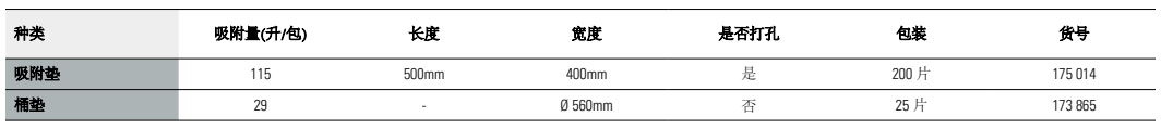 - 用于吸附所有非腐蚀性液体,如机油、水、冷却剂/润滑剂等