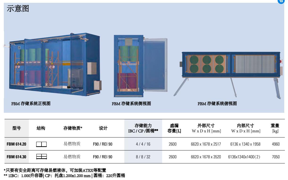 可用于存储4个205升圆桶(在一个化学托盘上)或1个1000升IBC吨桶,